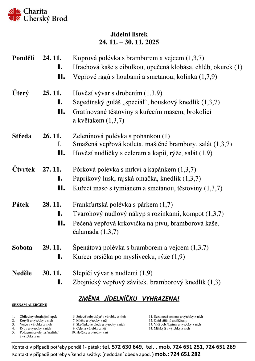 Jídelní lístek - ke stažení 24.11. - 30. 11. 2025