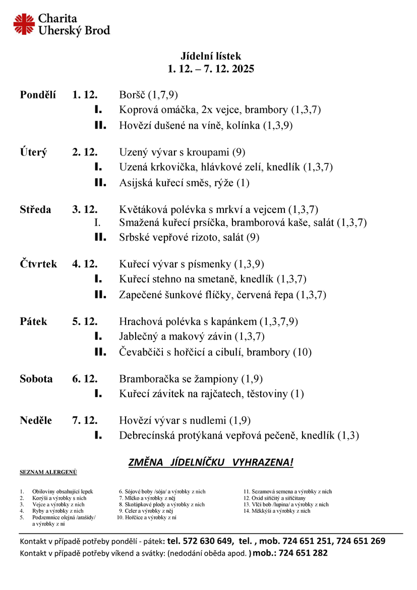 Jídelní lístek - ke stažení 1. 12. - 7. 12. 2025