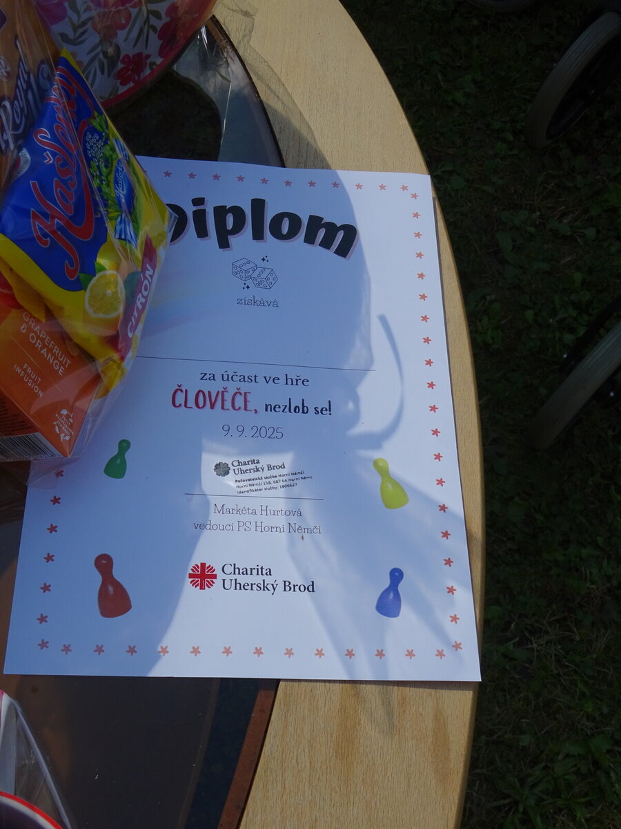 Tradiční a velmi oblíbený „celocharitní“ turnaj ve hře „Člověče, nezlob se!“ se uskutečnil, a to v pořadí po šestnácté, v úterý 9. září ve venkovních prostorách Pečovatelské služby Horní Němčí. Turnaj je určený pro klienty Charity a dalších regionálních sociálních služeb, a také pro příznivce Charity, příbuzné klientů a personál.