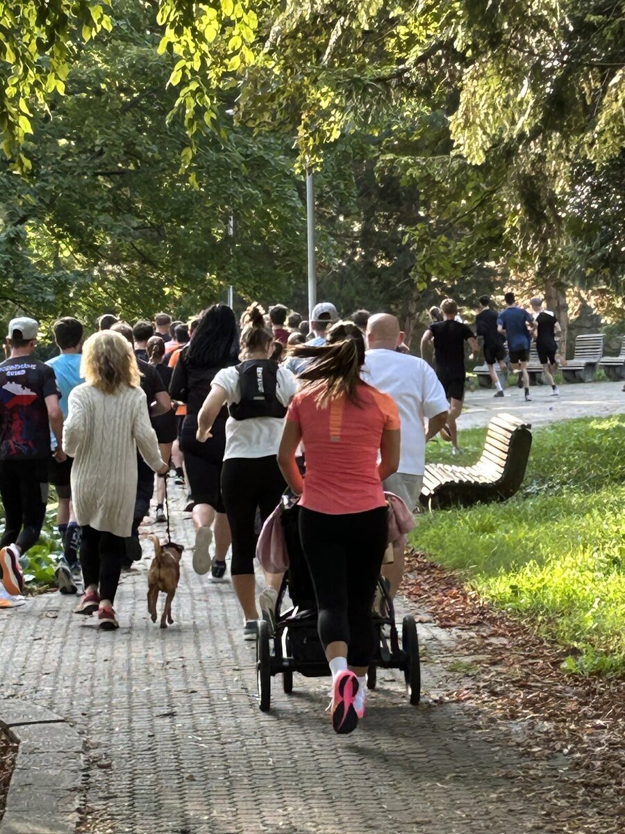 Poslední částí naší akce pak bylo protažení s Mírou Burianem, které rozhýbalo všechny natolik, že start 900 metrů dlouhé trasy byl už jen třešničkou na dortu. V průběhu pozdního odpoledne si přítomní mohli vyzkoušet běžecké boty Mizuno nebo si je i půjčit na samotný běh a to díky Lence Burianové a „Rozběháme Česko“, děkujeme! Na trase 900 metrů v 17:00 startovalo přibližně 50 běžců, běžkyň a běžčat a někteří si trasu dali i 3x, skvělý výkon! Nejpočetnější skupinou byla parta „Běžecký kalibr“ z Domova mládeže při SŠ COPT. Nejmladší účastník si dal trasu v kočárku, ale projevil neuvěřitelnou výdrž a trasu absolvoval s úsměvem až do cíle, za což si i on vysloužil medaili. Po běžecké části si pak nejvytrvalejší sportovci dne dali ještě „kruháč“ s Mírou Burianem, čímž u zacházejícího slunce zakončili tento skvělý den protkaný výzvou #zapojse!