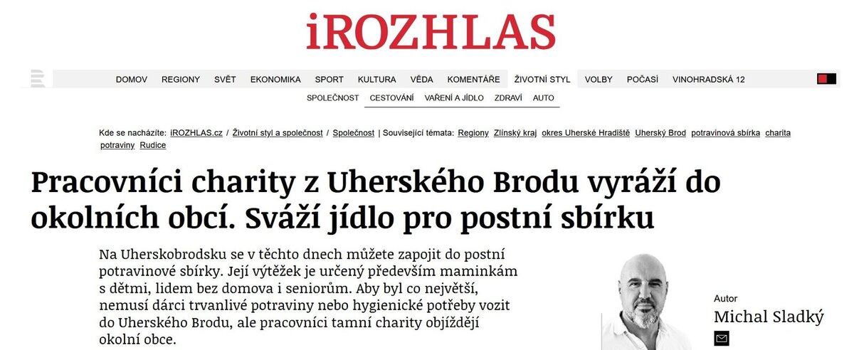 Reportáž si můžete přečíst i poslechnout zde: https://www.irozhlas.cz/zivotni-styl/spolecnost/pracovnici-charity-z-uherskeho-brodu-vyrazi-do-okolnich-obci-svazi-jidlo-pro_2603241411_dci?fbclid=IwY2xjawQx-H1leHRuA2FlbQIxMABzcnRjBmFwcF9pZBAyMjIwMzkxNzg4MjAwODkyAAEeM_i9iGYmZIzqMh6q7ruhFr2NJhQ7T5CwLSU60jgMXUD9vIQtMa6O4Jbdh40_aem_AIv0Iz8Wk8JHXbivZ90LUg